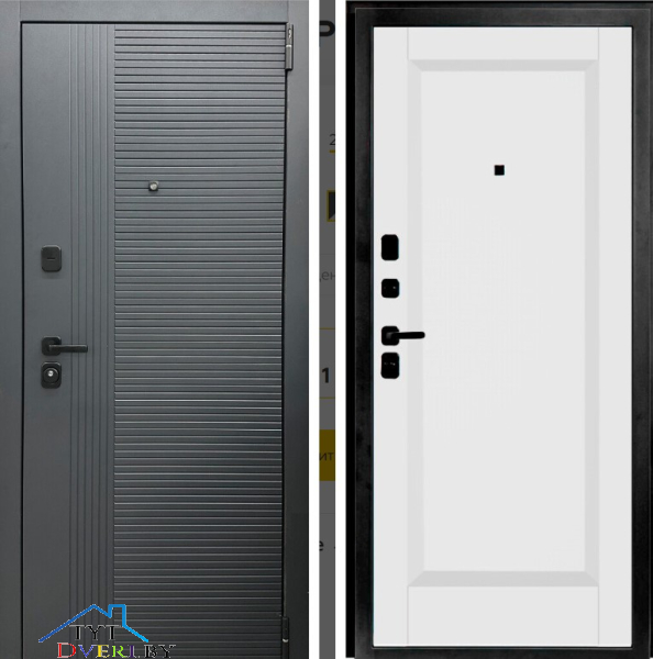 Три горизонтальных усиливающих омега-профиля (ребра) создают единую монолитную жесткость и прочность конструкции. Сверхпрочная конструкция «6x2» - двойная толщина стали профиля полотна, двух контуров коробки, в зонах замка и петель. Дополнительную стойкость ко взлому обеспечивают два противосъемных штыря с цинковым покрытием (для защиты металла от коррозии).