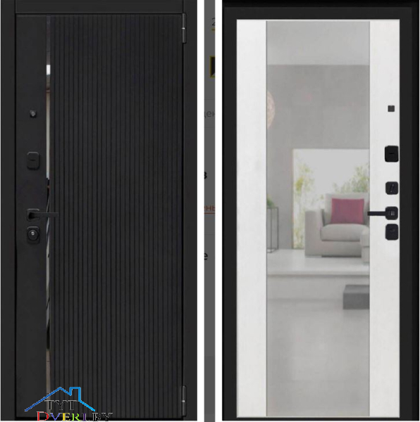 Три горизонтальных усиливающих омега-профиля (ребра) создают единую монолитную жесткость и прочность конструкции. Сверхпрочная конструкция «6x2» - двойная толщина стали профиля полотна, двух контуров коробки, в зонах замка и петель. Дополнительную стойкость ко взлому обеспечивают два противосъемных штыря с цинковым покрытием (для защиты металла от коррозии).