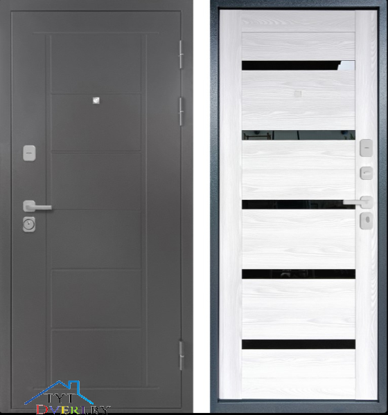 | Замки (2 шт.) | Верхний — сувальдный «ПРОМЕТ», 3 ригеля 16 мм, РФ (4-й класс взломостойкости) | |